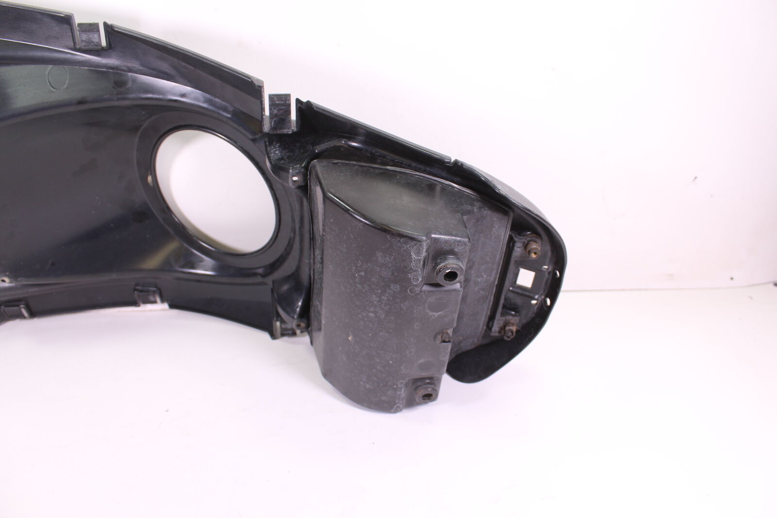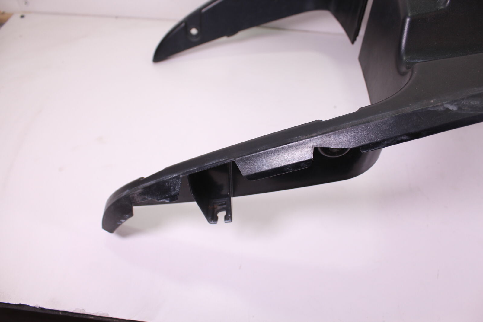 This item is in FAIR condition. Two of the small mounting tabs are broken, and one of the front tabs is also broken. It is straight. It has some scratches and wear marks. It only includes what is pictured.